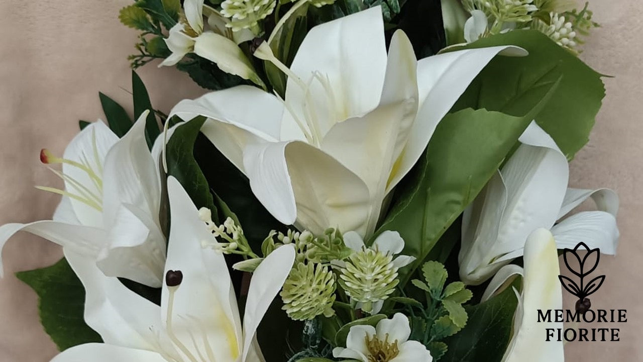 Allestimento piccolo e curato per ossari: composizione compatta ma ornamentale